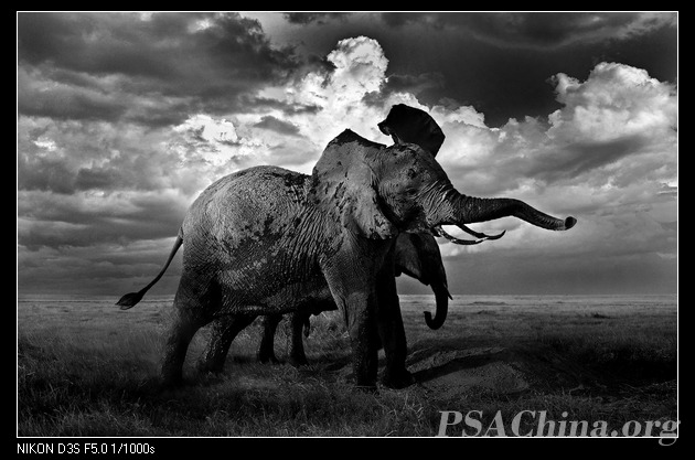 2011年阿联酋第6届国际摄影大赛作品《非洲象》荣获野生动物组铜牌。