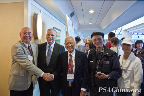 ![]() 在简老影展剪彩现场。中间为简庆福先生,左二为美国摄影学会会长,