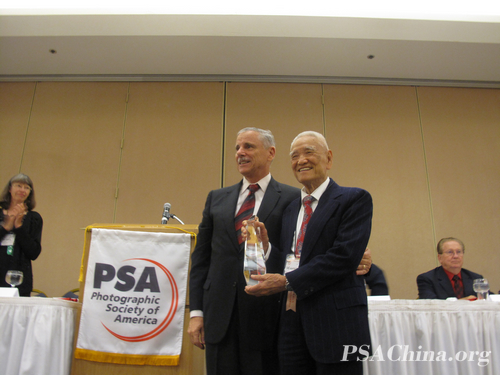 光与影的流金岁月——简庆福大师荣获美国摄影学会(PSA)“终身成就”最高荣誉 2012 年9月22日注定是一个不寻常的日子。在美国摄影学会(PSA)第74届年会的荣誉颁授典礼晚宴上, 简庆福大师获得了自PSA成立78年以来的首个“终身成就”奖。美国摄影学会PSA中国首席国际代表、美国摄影学会(中国)(PSA China)邓大端主席参与见证了这次典礼,并特意前往祝贺。 “终身成就”奖是美国摄影学会(PSA)在今年设立的一个新的荣誉奖项,这个奖是PSA给会员的最高荣誉。