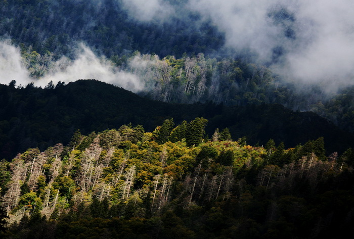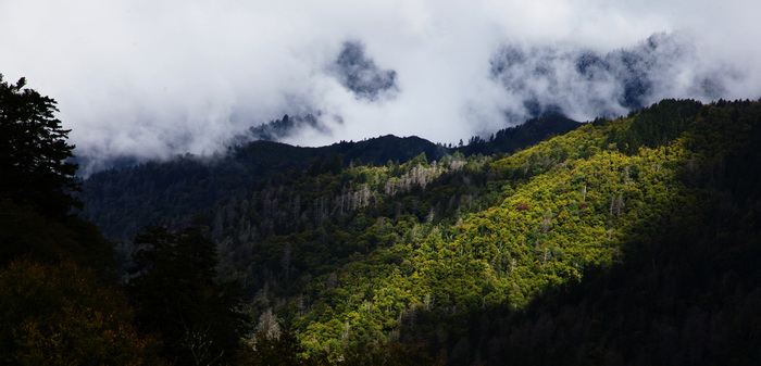 《风从中国来》代表团大雾山摄影采风之一--PSA第72届年会系列报道之九 时间:2010年10月05日 来源:本站原创 美国当地时间10月3日中国代表团办理完72届年会报到手续后,就踏上了前往大雾山国家公园(Great Smoky Mountains National Park)的拍摄采风之旅。经过数小时的车行,他们已经抵达公园腹地。 3日晚一场秋雨过后,今天天气有些凉(夜间温度接近0°),大家都感觉到深秋的凉意,于是换上了秋装。 今天的拍摄点大雾山国家公园——美国古老的第一个牧场,由于年代久远,现在已经成为了旅游圣地。 中国代表团成员在大雾山合影 大雾山国家公园海拔1,540米,占地200,000公顷。它横跨北卡罗莱纳州和田纳西州,是全美最受欢迎的国家公园,每年游客高达1,000万人。它与中国北方基本在同一维度上。大雾山因丰富的野生植被而闻名,由于树林里产生大量的地气常年笼罩在山上,大雾山因此而得名。 大雾山风景 大雾山风景 大雾山风景 采风中的邓老师 (图片提供:王家伟先生、于蔚先生)