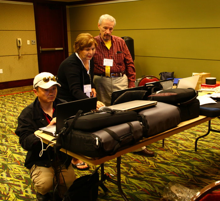 72届年会会场外景之二 到达现场恰遇本届大会主席Janet Bigalke、本届大会视频、技术负责人Jim Roberts,代表团领队将在本届年会上演示视频、书面资料等提交给他们,并与他们亲切交谈。 本届大会主席珍·比加尔克女士带领中国代表团,与正在召开本届年会的核心团队成员见面、交流并合影留念。