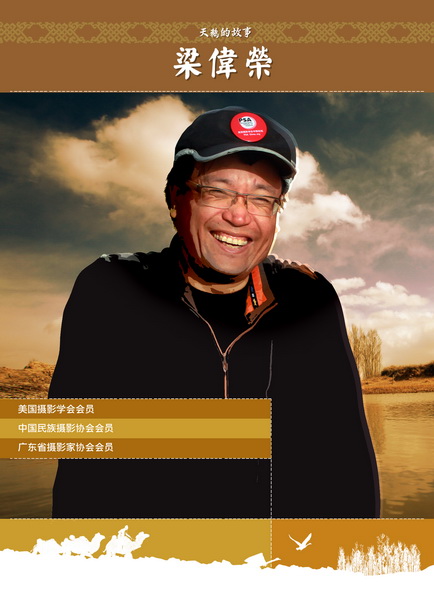 梁伟荣先生:《天鹅的故事》 身为美国摄影学会中国国际代表的梁伟荣先生,不仅热爱摄影,同时还致力于生态环境的维持保护工作。近年来,梁伟荣先生对内蒙古乌梁素海湿地保护区的环境治理做出了巨大贡献。 乌梁素海是中国十大淡水湖之一,此地栖息着大量鸟类,每年从西伯利亚飞来的候鸟6万多只,天鹅成群,这其中不乏世界濒危鸟类。为了能使这片美丽的土地能被更多的摄影人知晓,梁先生先后20余次进入湿地考察,拍摄记录了大量鸟类栖息生活的图片资料,默默无闻的做了大量幕后工作。在他的积极努力与精心筹备之下,美国摄影学会(中国)与内蒙古政府合作建立的乌梁素海湿地保护区摄影创作基地终于在2010年05月成立,这是美国摄影学会(中国)建立的首个摄影基地。他相信乌梁素海不应只是中国摄影人的乐园,这里欢迎所有关爱鸟类生存、热爱摄影艺术的朋友的到来。