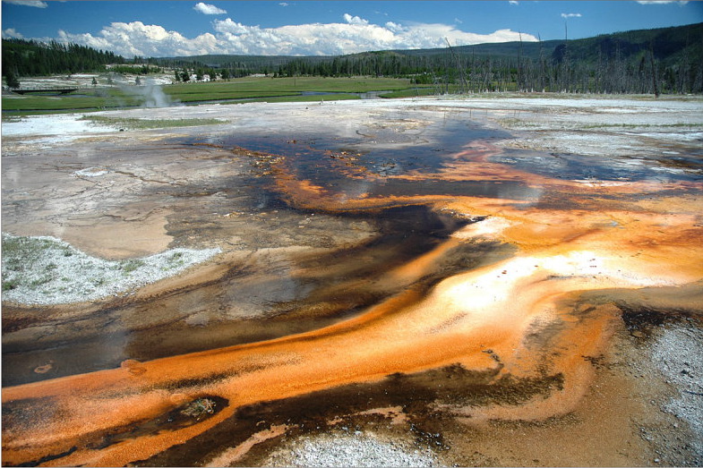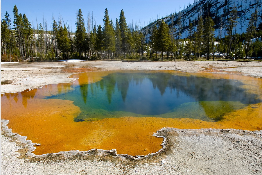黄石公园内拥有几乎世界上半数的地热喷泉景观,且这些喷泉大部分都位于上间歇泉盆地。在这一平方英里的范围内就有大大小小150处地热奇观,这个惊人的数字也让该地区成为世界上地热喷泉最密集的地区。