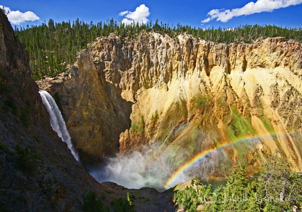 黄石河大峡谷是整个黄石公园峡谷区域最吸引人的景观。峡谷全长20英里;800到1200英尺深;宽度则有1500到4000英尺。美国大陆上最长的天然河流黄石河贯穿于整个峡谷,峡谷中的悬瀑也是非常壮观的重要景观。位于下瀑布上游的上瀑布落差有109英尺,可以从上瀑布路的边缘和汤姆大叔小径进行观赏。下瀑布落差有308英尺,可从下瀑布瞭望观景点、红石观景点、艺术家观景点以及下瀑布小路边缘和南部小路的多个观景点进行观赏。黄石峡谷的特别停留拍摄点是艺术家观景点。