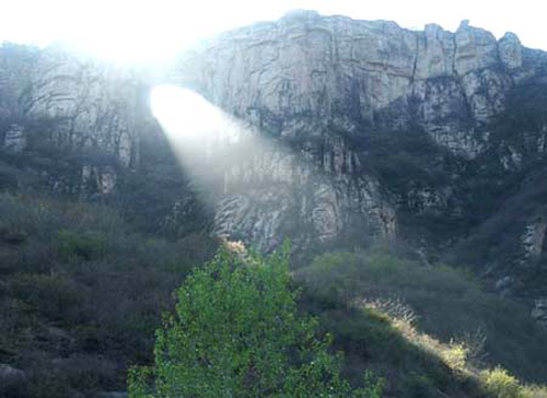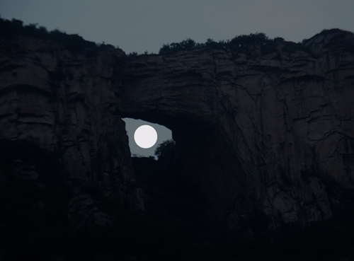 “天门悬月”——农历每月的13日至17日,月亮仿佛一面银镜悬挂于天门中间。