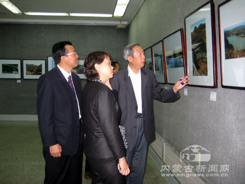 任志明为呼和浩特市市委常委、宣传部部长云丽珠(左二)讲解