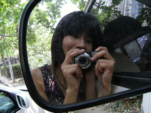 她的作品中有一幅是汽车后视镜中举着相机的自己。“照镜子是所有女孩子喜欢的事情,但我从来没有照过镜子。当我摸到这辆车的反光镜,感受着周围清凉的树阴,我就特别想用相机记录下自己在镜子前的样子。”李宁说。