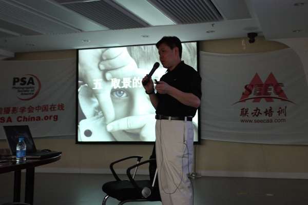 参与了本次上海采风活动的赵老师正在以新作为范本向大家讲解取景的注意事项