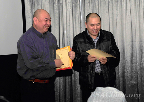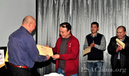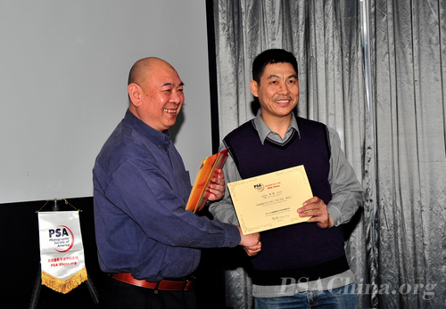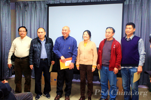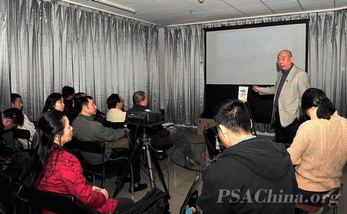 大师领衔摄影交流 ——广州工作站交流活动侧记之六时间:2011年12月28日 来源:美国摄影学会(中国)广州站 2011年12月23日晚上,美国摄影学会(中国)(PSAChina)广州站假座在广州海印摄影器材城锐意城,举行了广州会员摄影交流会,七十多名美国摄影学会(PSA)的会员和摄影爱好者齐聚在这里。大家分享经验,交流心得,气氛欢快又热烈。 本次活动首先由美国摄影学会(PSA)中国区首席国际代表、美国摄影学会(中国)(PSA China)主席邓大端先生主讲“风从中国来II”。这个专题主要介绍了PSAChina 五个摄影基地的摄影资源,展示了当地PSA会员们的摄影作品。 “风从中国来”始于2010年美国摄影学会76周年大会,PSAChina将邓大端先生、谢墨先生、梁伟荣先生等8位中国会员的摄影作品统一制作成专题,带到年会上展示,吸引了300多位参加年会的代表。由此,“风从中国来”便成为美国摄影学会(中国)的一个品牌,旨在将中国会员的优秀作品、中国的摄影资源汇集起来,进行更广泛的交流。 紧接着,"哈苏大使"谢墨先生主讲了他去加拿大采风以及他所拍摄的加拿大的自然风光。 席间,邓大端先生还为美国摄影学会(中国)广州站三位新晋副站长陈金成先生、杨春雨先生和陈列先生颁发了证书。 活动由新晋副站长陈金成先生主持。美国摄影学会地区主任、中国国际代表王莉女士专程从北京赶来参加了本次活动,广东省摄影家协会副主席陈俊生先生、美国摄影学会(PSA)国际代表梁伟荣先生也参加了本次活动。