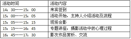 专题讲座:摄影与视觉心理——2012新春影友交流活动招募 经历了兔年,迎来了龙年。在这让人兴奋不已的节日里,相信各位影友一定用相机记录下了每一个精彩瞬间,创作出了心仪的摄影作品。新春伊始,由美国摄影学会(中国)和北京联办培训有限公司(SEECAA)将举办专题讲座《摄影与视觉心理》。本期活动分为两部分: 一、讲座:从摄影活动中的观察能力等心理过程,看如何提高摄影质量。 二、影友作品交流。 欢迎广大影友踊跃报名参加! 【活动时间】 2012年2月18日(星期六)15:00至17:30; 【活动地点】 北京市朝阳区朝外大街乙6号朝外SOHOC座1楼0172室(咖啡吧) 【参会人员】 美国摄影学会(中国)会员、广大摄影爱好者 【主讲老师】 赵亚鸣先生 美国摄影学会(PSA)会员、全国十佳摄影记者、美国摄影学会会员、中国摄影家协会会员、广角摄影学会理事、《证券市场周刊》首席摄影记者。 【作品要求】 1、请每位影友提交的五张作品发送到service@psachina.org 邮箱; 2、作品为JPEG格式,1024*768 ,800KB; 3、主题不限,彩色、黑白均可,作品需填写标题。 【报名方式】 电话报名:010-85657384 邮件报名:service@psachina.org 【收费标准及支付方式】 1、收费标准 PSA/PSA China会员: 60元/人(6折) 非会员:100元/人 1)会场使用费 2)咖啡、茶饮(不限量) 3)果品、茶点 4)培训费 2、付款方式: 1)支付宝付款: 支付宝账户:lianbanpeixun@seec.com.cn 2)银行汇款: 收款人名称:北京联办培训有限公司 收款人账号:0200242419020138108 收款人开户行:北京工行新中街支行 注:汇款后请务必保管好银行的回执单,并与我们电话联系确认。 3)现场收费 来不及汇款的影友可在活动当天签到时现场交费,收费标准:100元/人,现场交费将不享受优惠福利,不便之处敬请谅解。 【活动安排】 【活动场所】