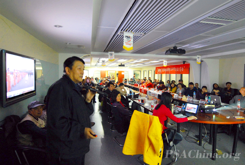 感异国风情 看风趣企鹅朱新生:南极之旅摄影作品创作交流分享会 3月17日下午3:00,美国摄影学会(中国)(PSA China)第27期影友交流会准时在PSA China总部泛利大厦会议室举行。这次交流会,特别邀请到中国通信摄影协会副主席兼常务副秘书长、美国摄影学会会员朱新生老师,和大家一起分享他远赴南极的摄影创作的经历,一路航行中感受的异国风俗、南极大陆上异美的日出日落以及企鹅的风趣。美国摄影学会(中国)(PSA China)主席邓大端、副主席王莉、出席了本次活动 ,邓大端主席向到会的130多位影友介绍了美国摄影学会(PSA)和美国摄影学会(中国)(PSA China),并向大家郑重宣布,由PSA China主办的第二届PSAChina国际摄影大赛今天全面启动,并欢迎广大影友积极参与国际摄影大赛,与国际朋友一同竞技。 朱新生老师精心做了准备,不仅仅展示他的摄影作品,还对旅途中经过的国家、城市直至最够登陆南极做了大量的知识背景、地理、地貌、气候知识的整理和介绍,他的语言幽默、风趣,交流现场不时爆发出阵阵笑声。 朱新生老师还对影友带来的摄影作品一一进行了点评。他还把他精心挑选和制作的三幅南极摄影作品赠送给了幸运获奖的影友,并为影友签名留念。 活动在晚上6:30结束,比预定的时间延长了一小时,但大家都感到意犹未尽,久久不愿离去。 2012年,美国摄影学会(中国)(PSA China)将组织多期内容丰富、形式多样的摄影专题系列讲座和采风活动。下期活动将于4月中旬举行,具体活动详情请关注美国摄影学会(中国)官方网站(www.psachina.org)。美国摄影学会(中国)(PSA China)定期组织会员和摄影爱好者开展专题讲座、作品交流和采风活动。至今已成功组织了二十七期活动。美国摄影学会(PSA)向全球个人及摄影社团开放,不论年龄、性别、种族、摄影技能、专业或商务背景。 只要你热爱摄影,你就属于PSA! 活动到场来宾大合影 美国摄影学会(中国)(PSA China)主席邓大端