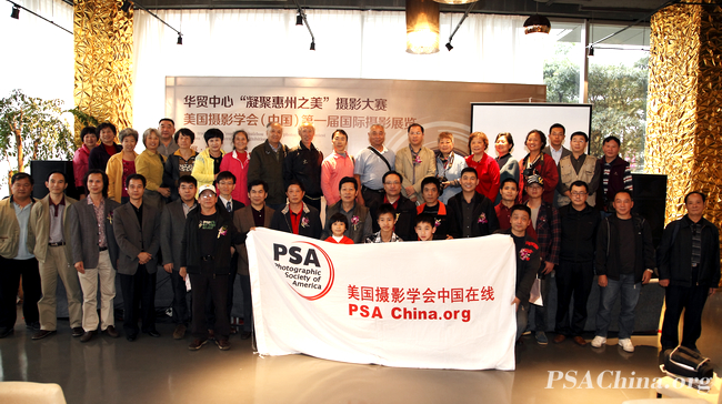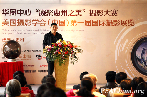 首届PSAChina国际摄影展惠州展区开幕圆满成功时间:2012年11月26日 图文:陈列 继广州,广东东莞长安,美国摄影学会(中国)(PSA China)成功举办“首届PSAChina国际摄影展”之后,2012年11月25日在中国广东惠州隆重拉开了“首届PSAChina国际摄影展”巡展的第三站展区。展出地点位于广东惠州市华贸中心首层 ,展出时间为2012年11月25日——12月5日。本次巡展将以广东珠三角地区为主。 本次巡展得到了惠州政府和惠州艺术摄影学会、华贸中心等有关领导和部门大力支持。参加影展开幕式的有:惠州市人民政府副秘书长练伟光先生、原人大副主任陈恩强、市文联主席安想珍、市侨联主席刘云、市中级人民法院纪检组组长罗建华、市文化广电新闻出版局副局长盛瑛、惠州艺术摄影学会会长林海等十几位领导,以及美国摄影学会(PSA)国际代表梁伟荣、美国摄影学会(中国)(PSAChina)广州站站长黄宣钦、副站长陈列等。 PSA China广州站副站长陈列主讲了“只要你热爱摄影,你就属于PSA!” 的主题演讲,意在宣传推广PSA摄影艺术。他着重介绍了邓大端主席为美国摄影学会(中国)(PSA China)这几年所作的贡献。同时讲解了如何参加美国摄影学会(PSA)认证的国际赛事,以及PSA参赛作品的分类和参赛投稿办法,并把这几年他在国际上获奖的摄影作品与大家分享和交流,获得恵州观众的认可和好评。 美国摄影学会(中国) (PSA China)自成立之日就一直致力于为“中国摄影人走向世界搭桥铺路”,通过在惠州举办“首届PSAChina国际摄影展”巡展,希望吸引恵州更多的摄影爱好者融入到国际摄影大家庭中,在国际摄影舞台上一展才华。 到会领导,嘉宾和影友们一起参观“首届PSAChina国际摄影展”惠州展,大家一边参观一边赞扬作品精彩! 特别鸣谢:惠州华贸中心 惠州艺术摄影学会