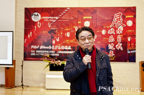 展示自我,快乐过年 PSAChina上海会员岁末摄影展时间:2013年02月04日 作者:沈健 2月2日美国摄影学会(中国(PSAChina)上海影友聚集在宜山路2016合川文化中心,共享“展示自我、欢乐过年”摄影展。 全家福 这次活动,希望通过展示“自己最喜爱的摄影作品”,交流、分享、吃“年夜饭”。在一月份向PSA China上海会员发出通知邀请后,不出半个月就征集到了48位影友的“自己最喜爱”的48幅作品。 影展以联欢会的形式开始。 袁安民先生 首先PSA China 上海工作站副站长袁安民宣读了美国摄影学会(中国)主席邓大端和PSA China广州工作站为本次影展发来的贺词。 沈健先生 美国摄影学会(PSA)国际代表沈健向参加影展的会员王柏永、陈春水、陈炳生、高艳东、陆根伟、姚伟、潘金明、马恩凯、吴亮、陈进建、舒昆报告了他们在2012年参加国际影展中所取得的成绩。同时他希望更多的朋友走出去,参加到国际影展的队伍中来,并希望大家都取得好成绩。 楼世芳先生 上海视觉艺术学院文产学院楼世芳副院长携夫人专程赶来祝贺本届影展成功,并鼓励大家把影展办为:艺术创作的组织者,美好世界的创作者。 影友顾萍表演了配乐诗朗诵《祖国啊,我亲爱的祖国》。 关栋天先生 袁安民预热京剧清唱,引来了上海著名京剧表演艺术家关栋天先生的一曲“今日同饮庆功酒”,博得阵阵掌声,使联欢会达到高潮。 书法家徐荣为影展写就春联:“精品力作喜色添,群贤必至迎新年”。 陈晓燕会上即兴创作了《朝中措——贺美国摄影学会岁末摄影展》:“新朋老友聚华堂,光影诉衷肠。把玩手中异宝,共经几度风霜?摄山问水,捉虫打鸟,还嗅芬芳。不羡青春年少,却看白发志扬!” PSA会员陈伟忠用自己参加美国摄影学会年会的体会谈了他对国际影展的认识;汤妙昌作为南极科考队队长,令大家充满了敬意,聆听他声情并茂的讲述,他在南极科学考察的遇险经历;PSA会员姚伟带来了他多次进藏的精美作品。 黛蔓酒庄提供了智利瓦尔帝维爱索卡本纳苏维翁酿酒师干红葡萄酒、法国夏德兰干白和帕尔梅丝梅乐干红三款葡萄酒为影展助兴。 2013年我们以“百花”迎春,开始2013农历新年后第一个影展。欢迎更多的朋友加入到PSAChina上海影展的队伍中来。也希望有更多朋友,投身国际影展展示自己的水平。 2012年上海以本地会员为基础,并辐射江浙、江西、河南、广西的等近百位会员和影友,组织了三次影展。第一次以“梅”为专题,40位影友400多幅作品,每人至少有一幅作品入选;第二次以“荷”为专题,来了70位影友,仍然是400多幅作品,通过评选展出50幅作品,此次影展作品广受好评;这次影展联谊会则强调过节的娱乐性,不设主题。 三次影展逐渐形成了PSAChina上海以普遍提高水平为主旨,推广美国摄影学会(PSA)人人参与的精神,张扬自我,提高影艺水平。