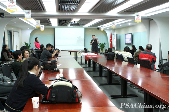 摄影就是要做到雅俗共赏——2012 PSAChina主题国际摄影大赛获奖作品赏片会侧记 时间:2013年03月25日来源:本站原创 参加活动部分成员合影留念 2013年3月25日下午,由美国摄影学会(中国)(PSA China)主办的第38期影友交流会在PSA China总部北京泛利大厦会议室举行。本期交流会的主题是“摄影就是要做到雅俗共赏”,重点对“2012 PSAChina主题国际摄影大赛”的获奖作品进行赏析。赵亚鸣先生(美国摄影学会会员、中国摄影家协会会员,北京广角摄影学会理事、全国十佳摄影记者、《证券市场周刊》首席摄影记者)担任主讲老师。美国摄影学会(PSA)中国国际代表、中国区地区主任、PSA China副主席王莉女士以及会员、影友等近30人参加了本次活动。 交流会现场 赵老师精心挑选出在往届PSAChina国际摄影大赛中的同题材获奖作品,进行对比。边分析作品边引出摄影知识点和操作点,例如:曝光控制问题,准确曝光与正确曝光差别;拍摄角度问题;数码摄影后期制作中的调色问题等。结合获奖作品,赵老师介绍了不同天气下的拍摄要领,比如清晨、黄昏时的拍摄时机,和大面积水边拍摄的注意事项,分享了他个人的宝贵经验。他还向大家介绍和推荐了一些国外优秀摄影作品和相关摄影文章。赵老师特别强调,摄影一定要有目的性。要在颜色、大小、虚实、曲直、明暗等地关系选择中,不断提升运用摄影语言的能力,有效地运用画面,并要养成良好的拍摄习惯。 在与参会人员的互动中,赵老师仔细地点评了部分参会者的作品,与大家进行讨论分享。大家畅所欲言,交流自己拍摄背后的故事和拍摄技巧。赵老师总结到:“摄影的乐趣之一就是有许多经历”。活动在愉快的气氛中圆满结束。 美国摄影学会(中国)( PSA China)定期组织会员和摄影爱好者开展专题讲座、作品交流和采风活动,至今已成功组织了三十八期。美国摄影学会(PSA)向全球个人及摄影社团开放,不论年龄、性别、种族、摄影技能、专业,只要你热爱摄影,你就属于PSA!