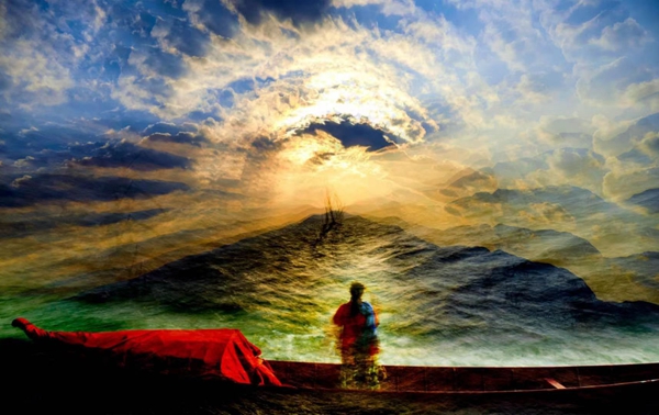 这是一幅创意摄影作品,主题命名《在水一方》超现实的画面构建出,祥云满天,霞光万丈,烟波浩渺,天水相连一望无际的场景。前景中站在船上那位佳人的显现,使整个画面都活了,犹如诗经中所描述的那样;蒹葭苍苍,白露为霜。所谓伊人,在水一方。从画面的表象来看,影调独特,色彩绚丽,意境非凡,隐意性很深,有如人间仙境般的场景令人兴奋,久久不能平静,但这仅仅是我们从表象中看到的一种美的感受,真正的内涵需要我们从整个画面的意境中去感悟,从隐意性中去剖析,从面对如此美景的镜中佳人身上去探寻她此时此刻内心深处的情感变化,她希望看到什么?希望得到什么?还是希望把看到的马上变成现实?这就是这幅创意作品主题构思的关键所在。此时此刻,此情此景,所谓伊人在何方?这是一个值得深思探讨的问题。