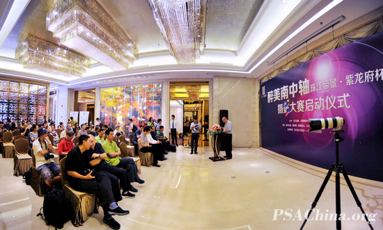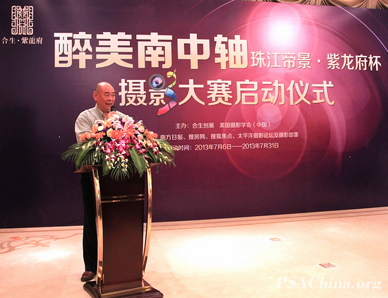 “醉美南中轴”摄影万元大奖赛启动仪式在广州隆重举行时间:2013年07月08日 来源:美国摄影学会(中国)广州站 陈列供稿 2013年7月6日,由美国摄影学会(中国)(PSA China)与合生创展共同主办的“醉美南中轴”摄影万元大奖赛的启动仪式,在广州海珠区合生紫龙府会所隆重举行。美国摄影学会(中国)(PSA China)主席邓大端,美国摄影学会中国国际代表梁伟荣,PSA China广州工作站站长黄宣钦,副站长陈金成、陈列,PSA会员袁伟发、冯冬生,刘晓明以及合生创展领导、新闻媒体等出席了活动。 “醉美南中轴”摄影万元大奖赛,是近半月内继“茗影艺韵”美国摄影学会(中国)摄影名家作品音乐会举办的又一次大型摄影万元大奖赛活动,活动得到了摄影届同仁、市民和多家媒体的高度关注,吸引了数百人参加,现场气氛非常热烈。 本次摄影大奖赛的活动时间为2013年7月6日至7月31日。参赛作品内容以珠江帝景附近富有城市特色的区域为中心的人文生态环境、市政建设景观和社区生活风貌为主。作品体裁不限,可以是人文、生态、建筑等方面,鼓励风格独特、个性鲜明、富有时代感的作品。参赛作品必须是近期拍摄的新作,不接受2013年6月1日前拍摄的作品参赛。 参赛细则详见:http://www.psachina.org/viewrp.action?id=1178 美国摄影学会(中国)主席邓大端出席并讲话 大奖赛启动仪式 参加活动的美国摄影学会(中国)活动组织者留影 启动仪式现场