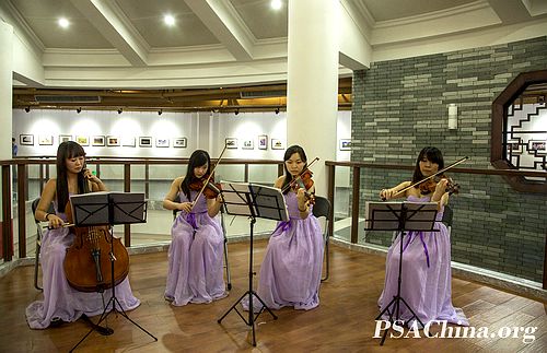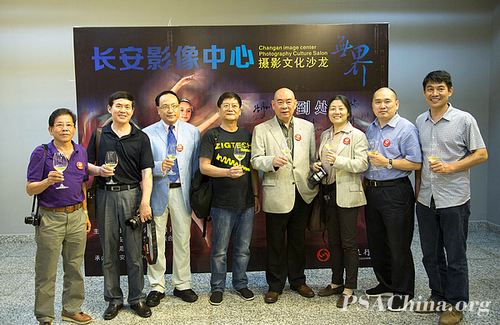 晚霞隐逸,迷人的暮蓝天空下,初夏的夜,总让人期待。紧邻深港的东莞长安镇华灯闪烁,镇图书馆大楼里,长安影像中心内人头涌动,乐曲飘扬,莞香浮芳;悬挂在环形展厅墙上的一百多幅摄影作品,在射灯的照耀下显得格外醒目。美国摄影学会(PSA)首席国际代表邓大端先生、国际代表王莉女士、顾问梁伟荣先生以及PSA China广州站的站长们和长安镇有关部门的领导们提前来到了现场。一场时尚新颖的摄影文化沙龙盛宴即将揭幕。