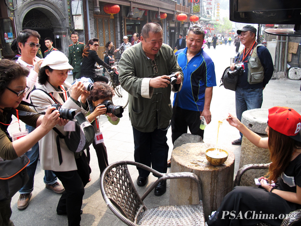 2014·“魅力大栅栏”摄影抓拍赛活动花絮之二时间:2014年4月24日 来源:图文邹祥宇 2014年4月24日,由美国摄影学会(中国)与大栅栏街道、搜狐数码公社等联合举办的魅力大栅栏街拍活动在大栅栏西街如期举行。 这次活动吸引了美国摄影学会的十余位会员前来参加,活动现场气氛十分融洽,许多久未相见的老影友、老朋友相会于此,交流着近期的拍摄经历,探讨着心得技巧、设备使用的经验。活动还未开始,大家已经纷纷亮出各自的长枪短炮,就近取材的在“贾大爷卤煮”店前拍摄起来。许多影友还纷纷来到大栅栏西街两侧商铺的二楼,居高临下的俯拍街景,找到了平时难得一见的拍摄角度。这次活动要感谢前门地区民间摄影高手贾勇先生的大力支持,贾老师长期拍摄北京胡同,在民俗纪实摄影方面有很深的造诣。胡同抓拍有贾老师带队并指导,影友们纷纷表示收获不小。 下午两点钟,活动正式开始。本次街拍这要分为两部分,胡同抓拍及琉璃厂东街街景抓拍。在贾老师的带领下,影友们深入了很多平时从没去过的小胡同,亲眼看到并亲身体会到了纯正的老北京民俗文化和市井氛围。人们的现代生活与古色古香的胡同相互交融,为影友们提供了丰富的拍摄素材,也让大家体会到了北京人生活的丰富情趣和乐观、向上的生活态度。 沿着曲折迂回的胡同行走,不知不觉间已经来到了琉璃厂地区。闻名中外的京城琉璃厂文化街,位于现在北京的和平门外,西至宣武区的南北柳巷,东至宣武区的延寿寺街,全长约800米。在辽代,这里并不是城里,当时叫“海王村”。后来,到了元朝这里开设了官窑,烧制琉璃瓦。自明代建设内城时,因为修建宫殿,就扩大了官窑的规模,琉璃厂成为当时朝廷工部的五大工厂之一,琉璃厂之名也起源于此。现在被大家熟知的琉璃厂文化街,则起源于清代,当时各地来京参加科举考试的举人大多集中住在这一带,因此在这里出售书籍和笔墨纸砚的店铺较多,形成了较浓的文化氛围。 在琉璃厂东街,大家不仅拍摄到了丰富的街景,还进入到了一得阁、茹古斋等老字号里面拍摄。热情的茹古斋老板还请大家品尝了他亲手泡制的陈年普洱茶。闻着茶香观赏字画,影友们真切的体会到了北京文化中的雅致和琉璃厂文化的精髓。 下午五点,活动圆满结束,大家带着意犹未尽的心情纷纷期待着美国摄影学会(中国)的下一次外拍活动。