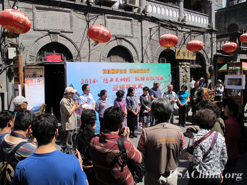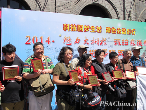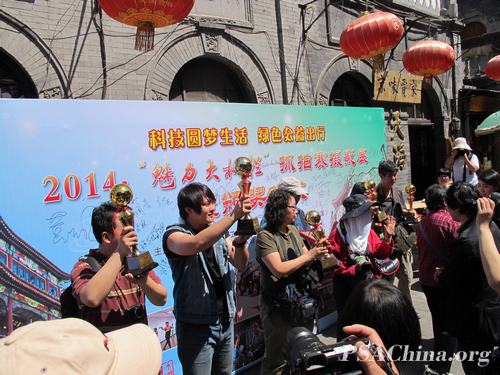 2014·“魅力大栅栏”抓拍赛摄影展开幕时间:2014年5月20日 来源:本站原创 由美国摄影学会(中国)(PSA China)参与举办的2014•“魅力大栅栏”抓拍赛摄影展暨颁奖仪式今日上午10点在北京大栅栏西街隆重举行,这也标志着本届影展正式开幕。 北京大栅栏街道工委、办事处与美国摄影学会(中国)(PSA China)、西城区文学艺术联合会、中国摄影师协会、长城摄影协会、搜狐数码公社等主办单位领导出席了颁奖仪式,并为抓拍赛的获奖者颁奖。 本届抓拍赛和影展旨在展现大栅栏地区独特的科技、人文、绿色以及和谐之美,响应市、区清洁空气蓝天行动,倡导科技、生活、绿色相互融合、相互促进,全面展示充满生机活力的大栅栏。 魅力大栅栏”抓拍赛自4月中旬启动以来,共征集到作品近4千余幅。围绕“科技圆梦生活、绿色公益出行”这一主题,影展将遴选的优秀作品,以老门板为展板的形式在大栅栏西街公开展览,影展时间为5月20日-24日,欢迎各界摄影爱好者前往观展! 主办方领导作为嘉宾出席颁奖礼 活动吸引了许多媒体和影友 获奖者举起了代表荣誉的奖杯 获奖者手持获奖证书露出了欣喜的微笑 摄影展在斑驳的老门板上进行展示 展出作品不时吸引路人驻足观看 影展也吸引了来此创作的影友 影展在大栅栏西街展出,欢迎观展! 欢迎转载,请注明出处!