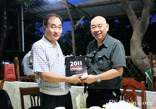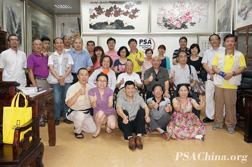 美国摄影学会(PSA)中国首席国际代表,PSA China主席邓大端带领荣誉顾问梁伟荣,PSA China广州工作站副站长陈列、陈金城和梁国雄及众骨干会员为访问团一行设宴接待。大家品岭南佳果,赏岭南名字画,喝岭南功夫茶,让贵客充分感受到广东岭南文化。晚宴中,邓大端主席向台湾中华艺术摄影家学会理事长林再生先生赠送了我会主办的PSAChina国际摄影大赛画册合集。双方热烈谈论共同探讨了摄影艺术话题和未来两会合作,大家交谈无拘无束,如同亲人团聚,友好平和。双方约定8月份台湾再相聚!