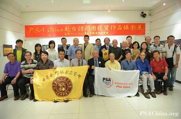 龙的传人,龙的文化-PSA China赴台访问团获奖作品摄影展时间:2014年8月18日来源:本站原创 8月16日下午,由美国摄影学会(中国)精英讲师团组成的赴台访问团参加了在台北活动中心举办的“龙的传人,龙的文化——PSA China赴台访问团获奖作品摄影展”开幕仪式。 活动当天台湾著名摄影家林再生、江村雄、周志刚、周鑫泉、王传信等与PSA China主席邓大端、孙建一、陈金成、万毅、陈列、潘金明、于蔚等共同出席开幕式,两岸摄影大师共聚于此进行摄影交流,并合影留念。