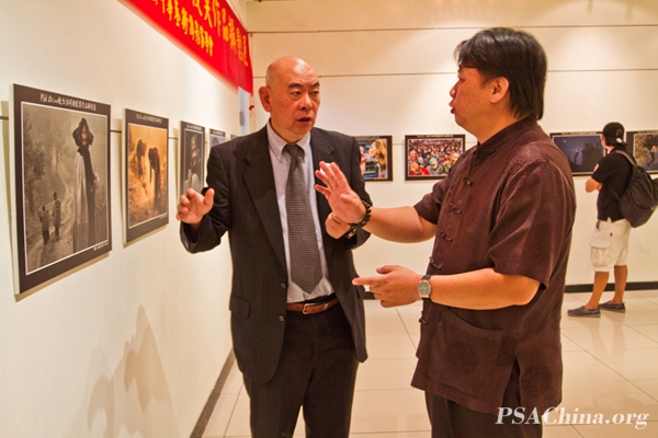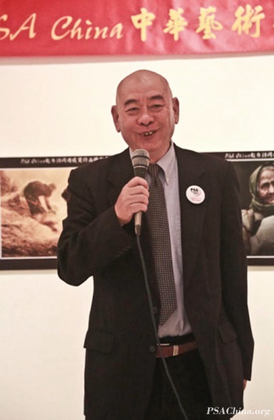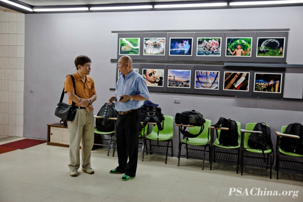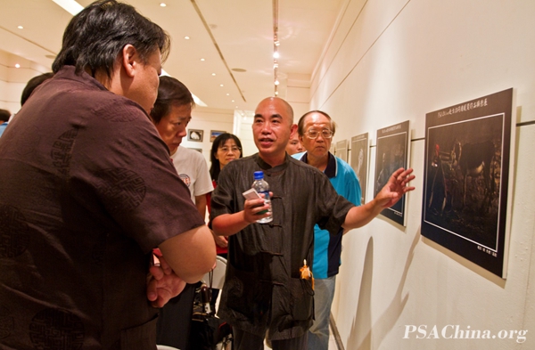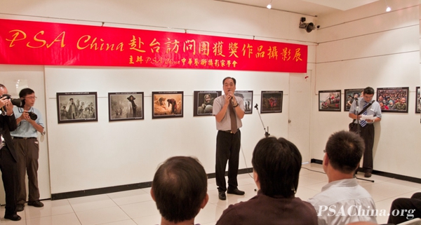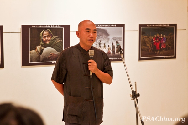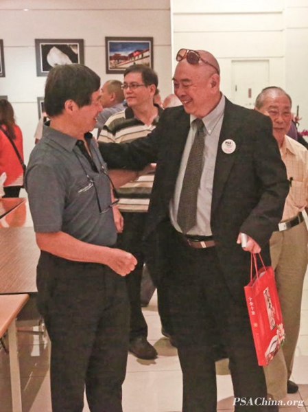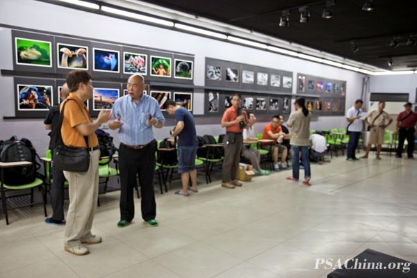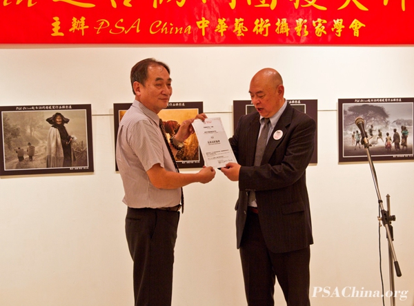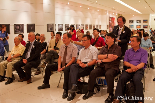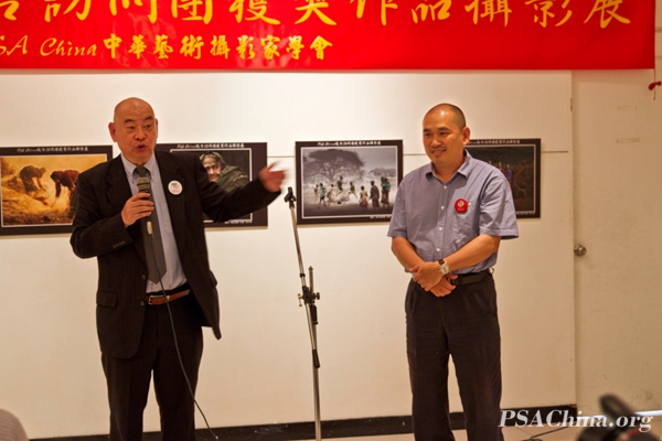 前排左起:周鑫泉、江村雄、周志刚、邓大端 会场来宾 精英讲师团的陈金成先生和万毅先生也就自己参加PSA认证的国际摄影大赛发表感想和经验。 邓大端主席介绍陈金成先生 万毅先生 PSA China和台湾中华艺术摄影学会结为友好协会 参加开幕式的来宾被参展的作品所吸引,热烈地与讲师团成员探讨交流摄影技艺。