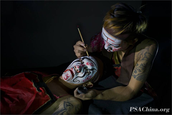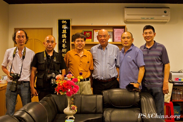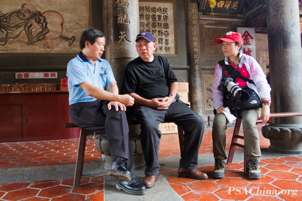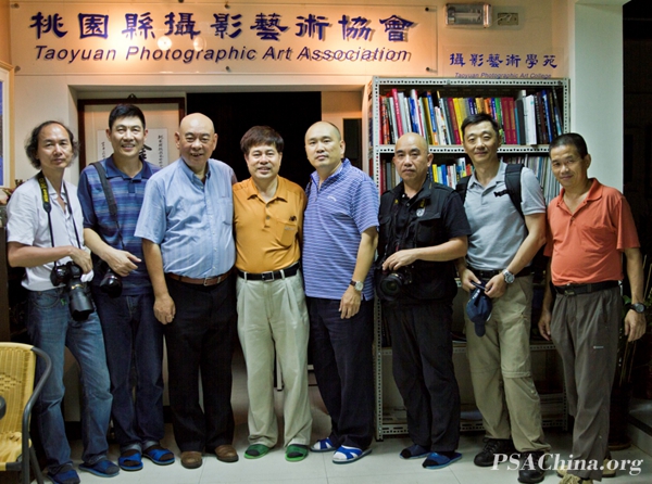 一、台北集合摄影八家将 美国摄影学会(中国)PSA China 精英讲师团成员获奖摄影精品在台湾展出, PSA China主席邓大端先生、讲师团成员广州的陈列先生、陈金成先生、福建的万毅先生和江苏的潘金明先生在2014年8月15日陆续抵台,在新北市集贤商务酒店汇合。 桃园机场到台北市的高架公路好像浮在城市的半空,让我们感受到现代的速度,从车窗两边望去,城市的楼宇连着的葱郁的农田,一切又非常踏实。跑下高架尽头,汽车很快就被淹没在狭窄喧嚣的小街上,节次鳞比的店铺招牌,店铺门口停放的机车,让广州来的陈列和陈金成恍然觉得似乎还在广州。接待我们的中华艺术摄影家协会的副秘书长刘育麟先生不时地为我们介绍着让我们即陌生又似乎熟悉的城市,台湾的一级行政区划是县,县下是市、镇、乡。我们第一站下榻的酒店在新北市,是台北的外围。就好像台北是蛋黄,新北市是蛋清。我们明天的影展开幕式在台北的中心区域——台北艺术馆。在台湾的每个县市有两条街道是必有的,一个是中正路,另一个是中山路,而这两条路一定是这个县市的中心。 晚上7点——10点,是拍摄台湾人文风俗“八家将”的时间。这也是中华艺术摄影家协会特意为我们一行安排的。学会在桃园县中坜市一幢小楼内,二层是一个大约300平米左右的摄影棚,三层是学会办公和摄影培训教室。二层的摄影棚的墙上整齐地陈列着学员们不同主题的摄影作品。我们来时,学员们已经在这里等候了。培训老师正忙着安排影像背景、灯光、模特的站位和动作。中华艺术摄影家协会国际沙龙总主席、桃园县艺术摄影家协会主席高源彬先生迎接我们。高主席就艺术摄影家协会在沙龙艺术摄影、摄影培训等方面的实践向PSA China 主席邓大端先生作了简要的介绍,并引导我们参观了他们的办公区和教室。