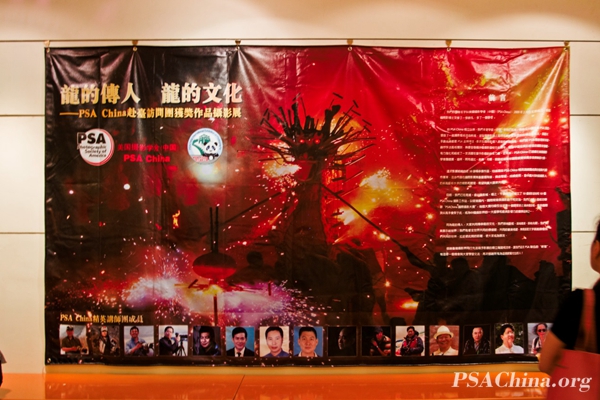 海峡两岸有关八家将(在福州叫八将爷)的传说有很多种。华南地区多湿多雨,瘟疫不时流行,所以两岸先民多有祭祀瘟神,以求驱除瘟疫。其中比较主流的是《道藏•搜神记》中的记载。八家将是五福大帝或称五福王爷专责捉邪驱鬼的八位将军。福州传说中的五福分别是张元伯、钟士秀、刘元达、史文业和赵光明。他们是好朋友,时常在一起把酒言欢,夜夜笙歌。一日,因见瘟鬼于井中施放疫毒,于是五人以身投井留书示警而死。后人感念其舍身救人,建庙祭祀。玉皇大帝得知后,封他们为五福王爷。 在台湾民间流传的是五人为泉州府五县的秀才,五秀才赴闽都应举人试,夜宿福州府南门外瘟神庙。夜半忽见金光闪耀,瘟神乘舆出,庙内鬼差大呼“三山城当难,本部堂奉上帝敕,来收劫数中人。”命水猴、水鸟、蛤蚌、鲈鱼、水蛙五妖怪,在五井中投放瘟毒。五人意将此事告知乡民,但恐他人认为是怪力乱神之说,乃决议牺牲自己,各投一井,并且留书以示警。五人成仁后,托梦告知乡民原委,并说玉皇大帝因五人舍身之德,已封为“五瘟大王”,主宰瘟疫,巡按天下,赏善罚恶。乡民为报恩情,故建庙祭祀之。 八家将的出现则是为五福王爷出行的需要,作为主神的护卫。八家将分前四班和后四季。前四班是:甘鹏飞甘将军主白天执行刑罚;柳钰柳将军主夜晚执行刑罚。甘柳二将排列在队伍之首。谢必安谢将军主捉鬼魂妖邪;范无救范将军主拿鬼魂妖邪。后四季是:春大神:著青袍,画龙面(莲),负责审问被捉拿的鬼魂,职在泼醒罪犯;夏大神:著红袍,画龟面(梅),负责审问被捉拿的鬼魂,职在烙烧罪犯;秋大神:着白袍,画鸟面(竹),负责审问被捉拿的鬼魂,职在敲打罪犯;冬大神:著黑袍,画虎面(菊),负责审问被捉拿的鬼魂,职在威吓罪犯。 八家将的装扮主要在于脸谱和法器。有专门的“面师”为家将开脸,一旦着装完毕,则扮演者就具有了神格,法术上身。也有家将团分文、武差的,文武差都会左手执羽扇,文差右手拿令牌,而武差则握着带三叉戟的令旗。 海峡两岸八家将的祭祀风俗大同小异,在重要节令,八家将也会担任庙宇、妈祖的开路先锋。 感谢本次赴台成员分享摄影作品。 二、凤凰花开 PSA China两岸再握手 8月16日下午3:00是这次台湾行的重头大戏开场。趁上午空闲时间刘副秘书长带大家到台北的中山广场、总统府等景点走马观花。 “龙的传人 龙的文化——PSA China赴台访问团获奖作品摄影展”一共展出PSA China精英讲师团十五位成员的50幅作品。每位讲师团成员都是从自己在国际摄影比赛中数度获得大奖的数百幅作品中精选出3-4幅来参加本次影展。 下午突如其来的一场豪雨拂去些许暑热。临近台北艺术馆时,刘副秘书长觉得大街上有些异样。原来马英九的车队正停靠在艺术馆附近的马路上,马英九刚刚出席了在这里举办的“2014年台湾青少年成年礼大会师”的活动。 台北艺术馆位于台北市中心区域,简约朴素的设计风格,留着岁月的痕迹。展厅布置在三楼。步入展厅迎面的墙壁上悬挂的是PSA China主席邓大端先生的“龙”,这幅作品曾获得美国摄影学会国际影展的金奖。影展吸引了岛内多家著名的摄影团体参加,有台北的,新北市的,还有台中、桃园、彰化、高雄等地的 邓大端先生和江村雄先生 老朋友相见分外高兴 说起这次赴台展览,还要把镜头推回到2013年10月,PSA China举办的第五届国际摄影大赛,首次邀请了台湾著名摄影家,美国摄影学会2012年Who’s Who第一名,中华艺术摄影协会 江村雄先生担任评委。PSA China实现了海峡两岸的第一次握手。期间,PSA China主席邓大端先生与江村雄先生就广泛的议题开展商讨,达成多项一致,今天在台湾举办的影展,就是在那次会晤中确定的。 让大陆摄影人走出去,加强海峡两岸、中国与世界民间摄影界的交流,是邓大端主席一贯倡导的,今天在凤凰花开的季节,在台北艺术馆成功举办本届展览,也是多年来邓主席不遗余力积极宣传和推动的硕果之一。 影展在下午3:00准时开始。中华艺术摄影学会的理事长林再生先生首先致辞,盛赞PSA China精英讲师团送展的优秀精美的作品。邓大端主席感谢中华艺术摄影学会为本次展览付出的辛苦和努力,倡议海峡两岸的摄影家和摄影组织应该,共同开辟国际摄影的大舞台。随后,多家台湾摄影学会的理事长、主席等发言,希望江村雄等著名台湾摄影家挂帅,也成立类似PSA China的摄影组织,方便两岸交流,方便台湾与国际摄影机构合作。