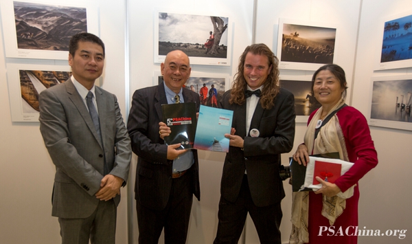 互赠画册留念(左起PSA China精英讲师肖戈、PSA China主席邓大端,奥赛主席Dr. Chris Hinterobermaier、PSA China副主席王莉)