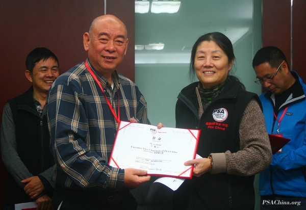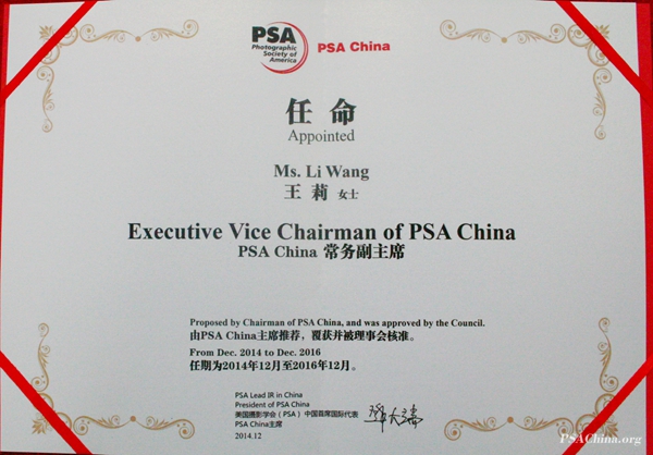 PSA China常务副主席王莉女士任命证书 欢迎转载,请注明出处!