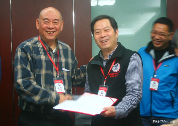 热烈庆祝PSA China主席团正式成立时间:2014年12月19日来源:本站原创 PSA China主席们团结一致迎接美好未来 为了使中国摄影人更快、更好地走向国际摄影舞台,推动摄影学和摄影艺术事业的繁荣发展。2014年12月17日,备受瞩目的PSA China主席团及主席团领导下的专项委员会正式成立,成立仪式在PSA China总部北京举行。 PSA China主席团成立仪式上,由PSA China主席邓大端任命王莉女士为PSA China常务副主席,负责PSA China的日常管理工作;任命廖小西先生、吴宗其先生、肖戈先生、谢大才先生、郑德雄先生为副主席。(按姓氏首字母排序) 特此祝贺! PSA China主席邓大端先生为主席们在任命证书上签名 PSA China主席邓大端先生为王莉女士颁发常务副主席任命证书 PSA China主席邓大端先生为廖小西先生颁发副主席任命证书 PSA China主席邓大端先生为吴宗其先生颁发副主席兼宣传公关委员会主任任命证书 PSA China主席邓大端先生为肖戈先生颁发副主席任命证书 PSA China主席邓大端先生为谢大才先生颁发副主席任命证书 PSA China主席邓大端先生为郑德雄先生颁发副主席任命证书 由PSA China主席邓大端任命廖小西先生为艺术专业委员会主任;任命吴宗其先生为宣传公关委员会主任;任命肖戈先生为战略发展委员会主任;任命谢大才先生为教育培训委员会主任。(按姓氏首字母排序) PSA China主席邓大端先生为廖小西先生颁发艺术专业委员会主任任命证书 PSA China主席邓大端先生为肖戈先生颁发战略发展委员会主任任命证书 PSA China主席邓大端先生为谢大才先生颁发教育培训委员会主任任命证书 PSA China主席团坚信PSA China明天会更好 首批主席团成员由PSA China主席邓大端先生从PSA China精英讲师团中任命,每两年一届,主席们均为美国摄影学会会员,并担任精英讲师连续两年以上,在PSA认证的国际影展上屡次摘金夺银,均在业界获得好评,有一定影响力与成就的杰出摄影人。 强大的主席团队伍,可以促使PSA China更强大,从而使越来越多的中国摄影人更快速的走向国际摄影舞台。正所谓“想要成为智者,须以智者为师,想要成为强者,须与强者为伍”。相信PSA China强大的团队在中国乃至全世界都能够享誉盛名!