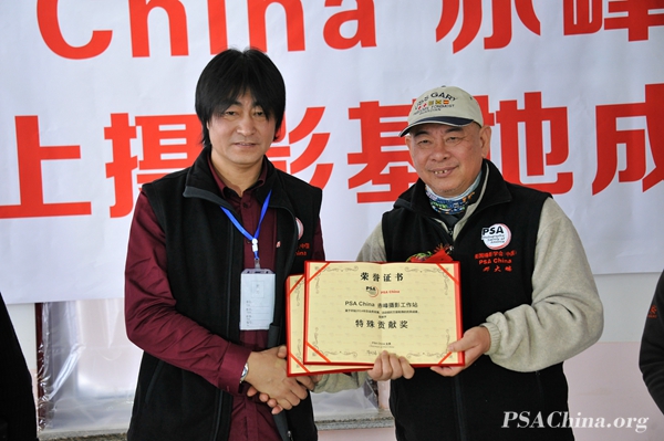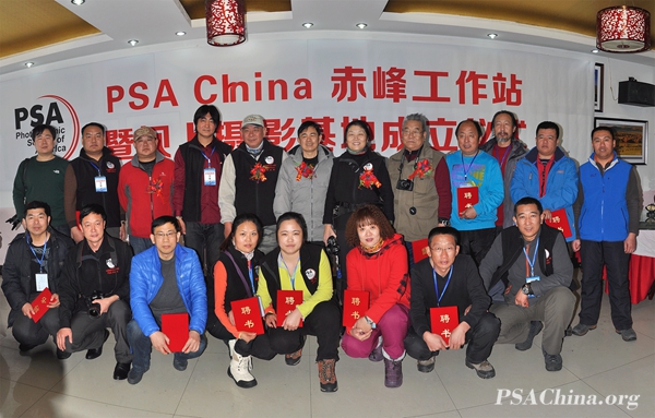 PSA China赤峰工作站及坝上摄影基地成立仪式暨创作采风活动成功举行时间:2015年1月23日 来源:本站原创 2015年1月18日上午,在内蒙古赤峰市坝上友谊宾馆隆重举行了PSA China赤峰工作站及坝上摄影基地成立仪式暨创作采风活动启动仪式。 PSA China主席邓大端、PSA China常务副主席王莉、PSA China副主席兼艺术专业委员会主任廖小西以及秘书长孙建一、副秘书长于蔚、赤峰艺术摄影家协会周锡三主席、赤峰市红山区摄影家协会主席厉民、赤峰市元宝山区摄影家协会主席邹宝良出席了成立仪式。来自广州工作站的陈列副站长、刘明副站长、梁国雄副站长以及北京、广东、福建、江苏、四川、山东、内蒙古赤峰市的七个省市自治区的PSAC会员代表七十多人参加了此次PSA China全国性盛会。 会议由赤峰艺术摄影家协会秘书长王运强主持。会议首先由赤峰艺术摄影家协会主席周锡三先生致会议开幕词。PSA China主席邓大端发表讲话,宣布PSA China赤峰摄影工作站和PSA China坝上摄影基地成立,并为PSA China赤峰工作站站长王亚波、PSA China坝上摄影基地主任刘立峰颁发了聘任书并授牌;为PSA China坝上摄影基地常务副主任王亚波、副主任邢晓龙颁发了聘任书,并为PSA China赤峰工作站颁发了特殊贡献奖。由PSA China赤峰工作站站长王亚波为PSA China赤峰工作站名誉站长周锡三、顾问邹宝良、常务副站长孙宝军、副站长曹亚军以及八个工作机构的各部门负责人颁发了聘任书。 PSA China坝上摄影基地主任刘立峰发表就职演说,PSA China赤峰工作站会员代表潘喜龙先生代表会员讲话,PSA China赤峰工作站站长王亚波就PSA China赤峰工作站筹备工作以及2015年工作计划发表了就职演说。大家一致认为PSA China是一个家,是让中国摄影人走向国际摄影舞台的桥梁,相信通过大家的团结努力可以让 PSA China越来越好,越来越强;相信赤峰摄影工作站、坝上摄影创作基地今后会诞生出更多的优秀作品,有更多的优秀会员、摄影人脱颖而出,摘金夺银! 随后,启动了赤峰工作站组织的为期5天的2015年第一次全国PSA China会员采风创作活动,期间PSA China会员们在PSA China摄影基地主任刘立峰、王亚波、邢晓龙的精心策划组织下,进行了“雪中奔马”、“雪中骆驼”和“坝上冰雪风光美景”为主题的采风创作活动,并于1月21日圆满成功结束。 PSA China主席邓大端发表讲话 PSA China主席邓大端在签名墙签名 PSA China主席邓大端发表讲话 PSA China主席邓大端为赤峰工作站站长王亚波颁发聘任书并授牌 PSA China主席邓大端为坝上摄影基地主任刘立峰颁发聘任书并授牌 PSA China主席邓大端为赤峰工作站颁发特殊贡献奖 PSA China主席团与赤峰工作站站长、坝上摄影基地主任、赤峰艺术摄影家协会周锡三主席合影 左起:PSA China坝上摄影基地主任刘立峰、PSA China副主席兼艺术专业委员会主任廖小西、PSA China主席邓大端、PSA China赤峰工作站站长王亚波、赤峰艺术摄影家协会周锡三主席、PSA China常务副主席王莉 赤峰工作站及坝上摄影基地成立仪式合影