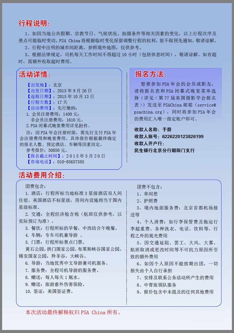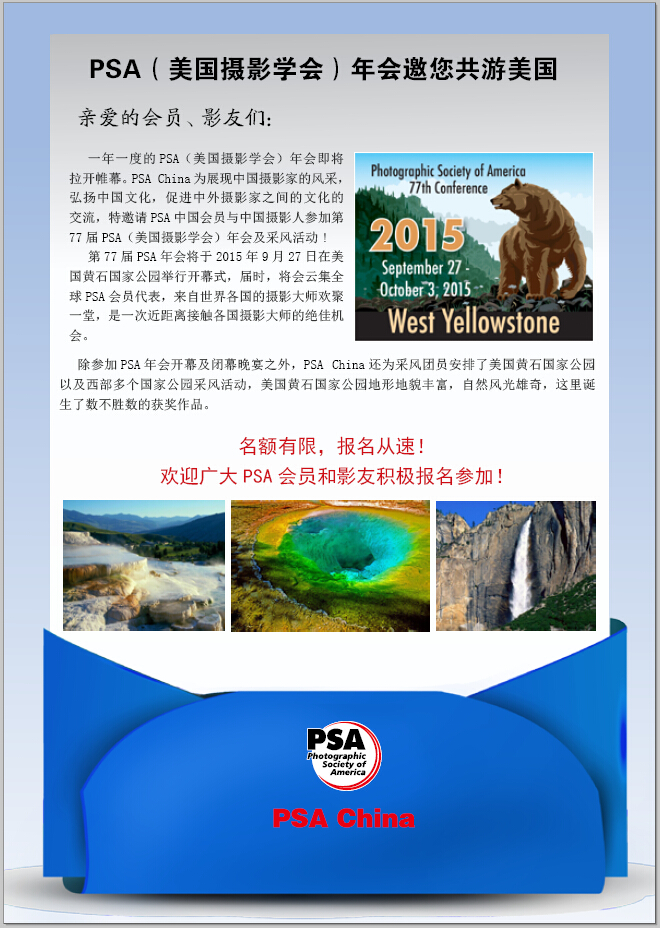 参加PSA年会报名截止日期延长至5月20日!欢迎广大会员、影友踊跃报名参加!