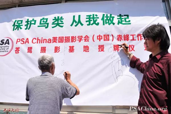 PSA China赤峰工作站苍鹭摄影基地授牌仪式时间:2015年5月25日 来源:PSA China 2015年5月23日,PSA China赤峰工作站的近三十名会员在王亚波站长的带领下,来到朝阳县七道岭乡苏家营子村牛子奇家举行苍鹭摄影基地授牌仪式。 牛子奇老人在当地被誉为苍鹭通,全国各地的摄影爱好者经常慕名前来拍摄苍鹭。牛子奇的家前后均有高树,是苍鹭筑巢的理想选择,也是摄影人拍摄苍鹭的较佳位置。他家也是朝阳市苍鹭保护区保护救助站,牛子奇老人经常救助从树上跌落的幼鸟。院墙上的标语写着“同在蓝天下 人鸟共家园”。 PSA China赤峰工作站苍鹭摄影基地 王亚波站长和牛子奇老人率先在签名墙上签字 PSA China赤峰工作站摄影创作部部长戴明生主持仪式 两人在《基地设立协议书》上签字 PSA China美国摄影学会(中国)赤峰工作站苍鹭摄影基地正式揭牌 PSA China赤峰工作站常务副站长孙宝军为牛子奇颁发聘书,聘任牛子奇为PSA China赤峰工作站苍鹭摄影基地主任 王亚波站长宣读PSA China美国摄影学会(中国)的宗旨和理念 牛子奇老人发布任职演讲,称今天是最快乐的一天,以后会竭诚为大家服务 PSA China赤峰工作站秘书处副秘书长张志恩代表工作站把苍鹭相关的摄影作品捐赠给苍鹭摄影基地 巴林右旗摄影家协会主席解广富宣读《爱鸟宣言》 所有与会人员合影 拍摄苍鹭的场景 苍鹭每年三月来到此地,七月初离开,主要任务是繁衍后代,所以拍摄也主要围绕着筑巢、求偶、捕猎、喂食等场景来拍。因为苍鹭栖息的树枝较高,拍摄距离较远,所以用焦距400-600的镜头为宜。 欢迎转载,请注明出处! |