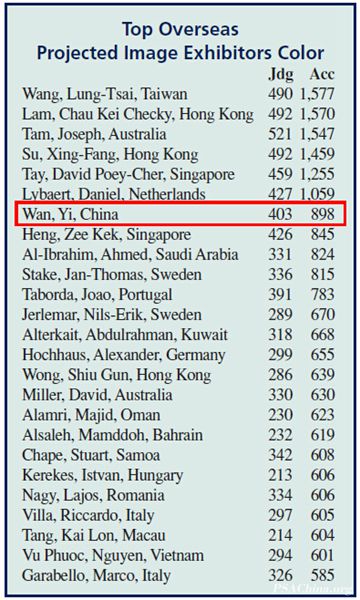 PSA2014年世界摄影名人录画意彩色组总成绩