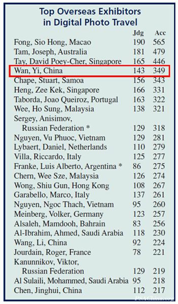 万毅 2014年世界摄影名人录 成绩及排名 |