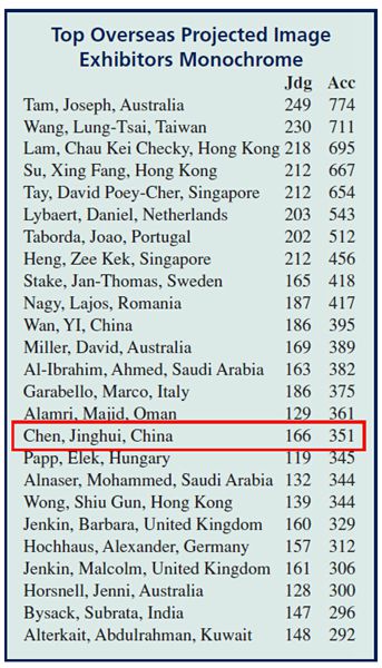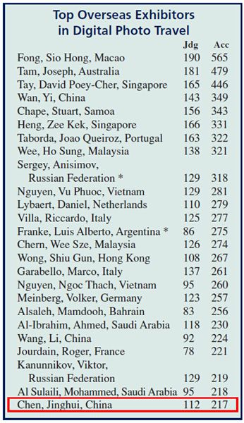 陈竟辉 2014年世界摄影名人录 成绩及排名 |