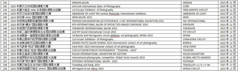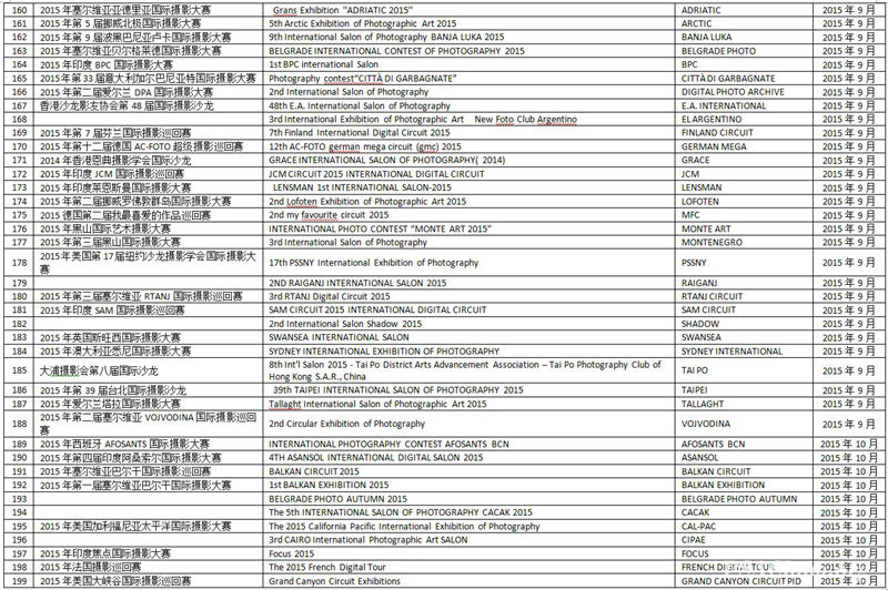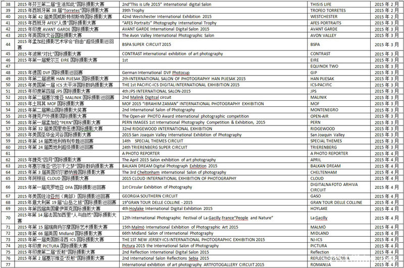 2015年度PSA China国际摄影十杰评定活动通知时间:2016年1月18日 来源:PSA China 尊敬的PSAC会员朋友们: 自2011年1月PSA China首次评选并公布“2010年度PSA China国际摄影十杰”以来, 迄今已进入第五个年度。 经过几年的努力和积淀,“PSA China国际摄影十杰”的评定已全面覆盖PSA认证国际摄影赛事,收集整理参赛成绩流程日臻完善,建立了完整的历史数据库,从而保证了其评定结果的公平、公正和权威性。“PSA China国际摄影十杰”已成为中国摄影人的“国际摄影名人录”,日益受到中国乃至世界摄影界的关注和广泛认可。 目前 “2015年度PSA China国际摄影十杰”的评定工作已经开始。为进一步明确和规范评定活动,在坚持公平公正权威的基础上,遵循PSAC历年一贯的计分标准, PSAC对评定的有关管理办法进行了适当修订。进一步明确和规范了入选人必须具有的PSAC会员资格并对计分成绩的赛事范围进行了明示。 PSAC会员年度成绩分值,不仅是PSAC会员参加年度十杰评定的唯一依据,同时也将计入会员个人成绩档案,成为未来申办PSAC会员星标和PSAC影艺名衔的依据。 PSAC年度十杰的评定,是对PSAC会员上一年度国际摄影赛事成绩的回顾和检阅,并由此激励更多的中外摄影人关注并加入PSAC这个共同学习交流成长的大家庭、大学校,积极参与国际摄影大赛,获取更筑摄影艺术之梦,共享艺术创作成果,将继续推动和帮助更多的中国摄影人走向世界! 1.年度十杰评定方法 2015年PSAC十杰,将以PSAC国际摄影赛事成绩数据库为依据,延续PSAC一贯采用的计分标准,针对入围和获奖作品计算分值并排名,评定方法不变。具体规定参见《PSAC国际摄影十杰评选管理办法》。 2.入选资格 进入“十杰”及“TOP25”榜单的,必须为PSAC持证会员且具备有效年度会员资格(上一年度会员持证有效期不少于6个月)。 3.计分的赛事范围 可计入有效分值的赛事成绩,必须为PSAC公布认可的计分国际摄影赛事成绩,赛事清单参见《附录一》。 为保证收集整理2015年赛事成绩的全面性和时效性,本次评定收录的赛事,截稿日期在2015年1月1日(含)至2015年12月31日(含)之间,成绩公布日期在2016年1月15日(含)前。2016年1月15日后公布成绩的2015年赛事,其成绩纳入2016年度十杰评选。 4.会员成绩复核 十杰评定结果公布后1个月内,PSAC接受会员成绩复核。会员如需进行个人成绩复核,需在规定时间内(2016年1月22日前)依照标准格式(见《附录二》)提交个人成绩汇总,并提供相关的入围及获奖证明(入围或获奖邮件及其他证明)。PSAC将会依据相关证明做出勘误,并记入会员个人成绩档案。 PSA China秘书处 2016年1月12日 以下为评选“2015年度PSA China国际摄影十杰”成绩有效赛事(共261个): 1.第七届PSA China国际摄影大赛 2.第四届PSA China特克斯国际摄影大赛 3.PSAC提供代理投稿服务的国际摄影大赛,以及其他PSAC认可成绩的国际摄影赛事共259个: 如果您是PSA China会员,想要提供汇总成绩,请下载模板。 将填写好的表格发到PSA China邮箱:service@psachina.org。 咨询电话:010-85657385 本次“PSA China国际摄影十杰”评选获得最终解释权归PSA China所有。 本文谢绝转载! |