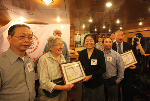 PSA75周年大会副主席夫人 Signe Emmerich女士给王琛先生颁发PSA中国区国际代表证书