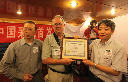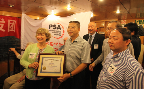 2009年6月2日晚8:00美国摄影学会(PSA)中国区国际代表授予仪式暨欢迎PSA元老会员来中国采风首发团酒会在上海黄浦江秦淮河号游轮上举行。