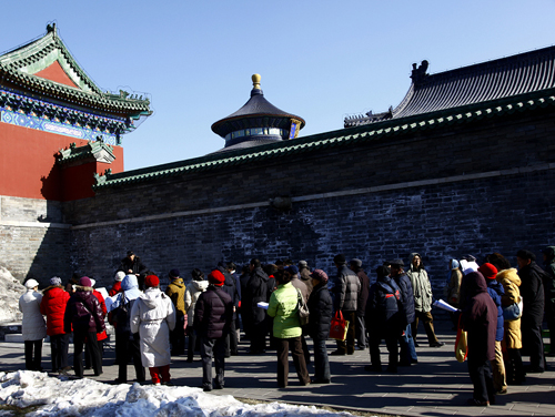 天坛外拍:快乐似天堂——PSA北京区摄影采风系列活动之七 2010年02月02日 来源:本站原创 2010年1月30日,由美国摄影学会(中国)北京区组织的天坛摄影采风活动,在一个风和日丽的星期六拉开了帷幕。 天坛曾是古代皇帝用来祭天、祈谷的地方。现如今,天坛早已被揭去了神秘的面纱,曾经的庄严肃穆被晨练大军的活跃和欢快气氛所取代。 这次采风活动由陈金龙老师带队,PSA活跃会员王家伟先生及摄影爱好者石老师热情参与,我们伴着朝阳走进天坛公园。公园的各个角落里都能发现人们晨练的身影,练太极拳、跳交谊舞、打羽毛球、踢毽子,各类晨练活动可谓多姿多彩。在这里大家呼吸着清新的空气,怀揣着相同的目的,强身健体,娱乐自己。在清晨的第一缕阳光中舒活筋骨。这些或矫健或优美的身影构成了天坛公园独一无二的健身风景。