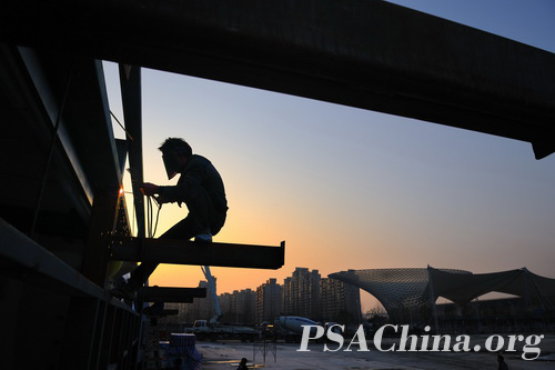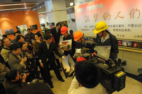 筑梦的人们 —— 献给世博建设者时间:2010年4月26日 来源:本站原创 2010年4月24日上午十时,《筑梦的人们——献给世博建设者》——陈晖人文影像作品展在上海市静安文化馆开幕。本次展览由上海市静安文化馆和上海市静安摄影协会主办。美国摄影学会中国国际代表沈健出席了影展的开幕式。 整整两年,50多次深入世博工地,陈晖记录了这些世博会民工建设者们,记录了我们的世博梦想如何在他们手中成真。同时陈晖也了解了世博梦想对于他们生活的意义——不是鲜花、不是鼓掌,是一份生活,一份关怀,一份发自内心的尊重。陈晖用镜头真实地体现了其中蕴涵着的不朽的精神。 陈晖之所以选择世博会民工建设者来拍摄, 与他的生活经历有关。童年在农村长大的他,对现时处境艰苦的人群有一种与生俱来的感情。带着对农民工的深厚情谊,陈晖选择了民工——筑梦的人来为他的影展揭幕。 陈晖之所以选择世博会民工建设者来拍摄, 与他的生活经历有关。童年在农村长大的他,对现时处境艰苦的人群有一种与生俱来的感情。带着对农民工的深厚情谊,陈晖选择了民工——筑梦的人来为他的影展揭幕。 陈晖80年代初来到上海, 作为新移民中的“老一辈”,经历了中国和上海这三十年的巨大变化,穷和富的变迁, 旧与新的对立, 强与弱的并存, 中和外的碰撞, “高尚”和”卑微”的落差…… 他的作品中表达着对生活的理解和观察。他在拍摄时还尽可能多地记录了拍摄对象的群体、分布、籍贯和状态等等。之所以会这么做, 完全是出于对他们的敬佩和发自内心的尊重。他说:我既然拍摄了他们, 我就要了解他们, 我就要表现他们。 我不希望若干年后, 说起我拍摄的这些兄弟们, 只能用“无数不知名的建设者”这样没有生命的语言来描述他们。 所以只要是有可能, 我就要记下他们, 因为在我心中, 他们每个人都是一片天。 正如陈晖所说:两年拍摄多少艰辛、多少喜悦,甘苦自知。但看完这些摄影作品,留给我们的印象是——陈晖做了一件非常有意义的事,他的作品让我们清晰地记住这些面孔,正像他说的,日后,当我们在欣赏世博会的宏篇巨著时,不要忘记,世博的梦想就是由他们一锹一锤,一沙一土,慢慢筑起来的!