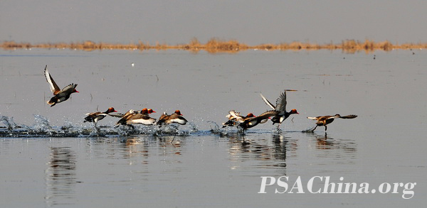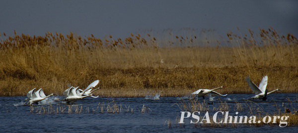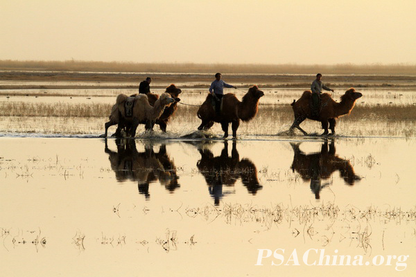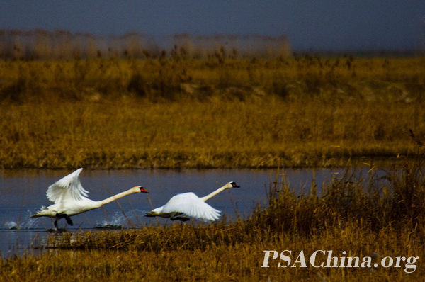 时间:2010年05月07日 来源:本站原创 2010年5月1日至5月3日美国摄影学会(中国)组织了内蒙古乌梁素海摄影采风活动。本次拍摄的主题是:乌梁素海的鸟和草原风情。美国摄影学会中国区首席代表邓大端先生特意从广东赶来,担任本次活动的摄影指导。美国摄影学会新任国际代表梁伟荣先生为本次活动倾注了大量的时间和精力,精心安排活动的各个细节。 活动期间,我们还和来自于当地及广东等地的摄影家协会举办了“影像剧场”专题。巴彦淖尔市摄影家协会主席史学军先生专题介绍了他在乌梁素海以及内蒙西部地区的摄影作品。邓大端先生重点介绍了他在美国黄石公园的摄影作品。 乌梁素海位于巴彦淖尔市乌拉特前旗境内,是一块位于干旱地区的湿地,是我国北方重要的水鸟繁殖地和迁徙的驿站。乌梁素海水域的鸟类有230多种,每年3月到10月,是候鸟恋爱、繁衍、休养生息的季节。据当地渔民说每年国庆前后是白天鹅最多的时候,多得像草原上的羊群。 乌梁素海是国家级鸟类保护湿地。经过近几年的治理,湿地水质虽然有了较大改善,但整个湿地的生态环境还很脆弱。 下面,请跟着我们的镜头去看看这片湿地的候鸟们,看看他们的故事: 成群的野鸭(贾娟摄) 五一期间天灰灰的,水也灰灰的。这并不妨碍野鸭们嬉戏(PSA会员王旭东摄) 瞧!野鸭起飞的线路和姿势(PSA会员佟桦摄) 也有不幸的野鸭,被渔网缠住。当时真是急红了眼了(PSA会员崔平摄)。崔平和他一家及时地剪断渔网,救了它一命。 当野鸭们从太阳下飞过的时候……(PSA会员崔平摄) 在天愿做比翼鸟(PSA会员于蔚摄) 能这么近距离地拍摄到天鹅实属不易。这只离群的天鹅尽了最大的努力欲飞,但是实在力不从心,此时它正发着高烧。大家把它抱上岸送到鸟类保护站,但还是没能把它救活。听保护站站长说,在当晚9:00这只天鹅死了。PSA会员李小平把它最后的美丽给凝固下来。 每年3月以后,天鹅们陆续来到乌梁素海,开始他们的恋爱季(PSA会员孙建一摄) PSA会员王家伟拍摄的起飞中的天鹅 PSA国际代表王莉拍摄的白鹭,像不像在跟渔船告别? 乌梁素海也有别样的风情,PSA会员王浚用G9拍摄的披“婚纱”的昆虫,瞧那头上清晰的细细的绒毛,很像新娘头上的婚纱花。 夕阳中的驼队(PSA会员孙建一摄) 深情地凝望(PSA会员王旭东摄) 最后,再次感谢梁伟荣先生和其他工作人员,是他们披星戴月地工作和精心地安排,才使我们这次乌梁素海活动举办得如此成功!