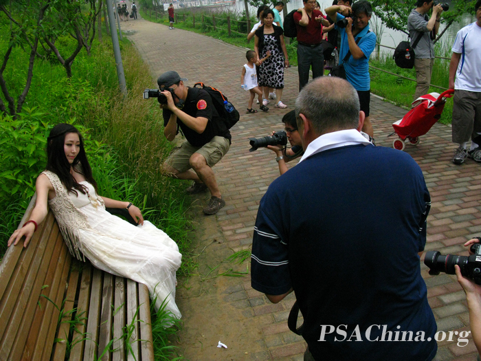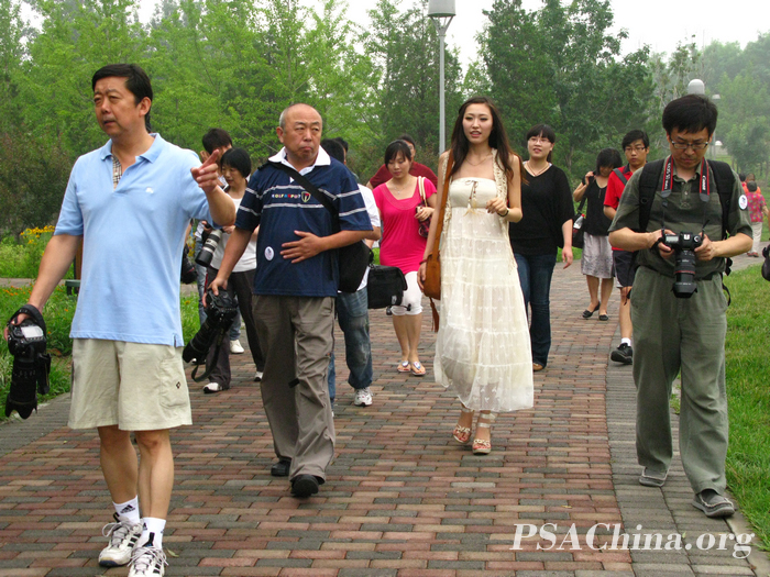 天公作美!清凉外拍!时间:2010年07月11日 来源:本站原创 2010年07月11日(星期日),在阴云蔽日的奥林匹克森林公园,由美国摄影学会(中国)与天佑摄影俱乐部联合举办的人像外拍活动照常进行。 京城在经历了数日高温洗礼后,终于迎来了雨露的滋润。雨水在给大家带来舒适温度的同时,也给外拍活动带来了一些不确定因素。周日的天空一直阴郁,偶有小雨作伴,空气稍有些闷,但始终没有瓢泼将至的感觉。我们的外拍活动就在这样的天气情况下照常展开了。参加活动的影友被分为数组,每组一位模特。我们这一组由PSA热心会员凌先生带队,一路上走走停停,寻觅合适的拍摄环境。模特在凌先生的指点下选好位置、摆好姿势,随后大家举起长枪短炮狂拍,一时间快门声噼啪作响,将各位影友心目中的那些美妙的瞬间凝固成张张作品,留待下期交流活动时由专业老师评说。 两个小时的创作时间实在是不长,拍摄结束后还有很多影友意犹未尽,三三两两的停留在森林公园出口处交流拍摄心得。而那雨水却也迟迟未下。令人不由得感叹,此次活动不仅有靓丽模特相伴,天公也给足面子,真是使人身心皆愉悦~!