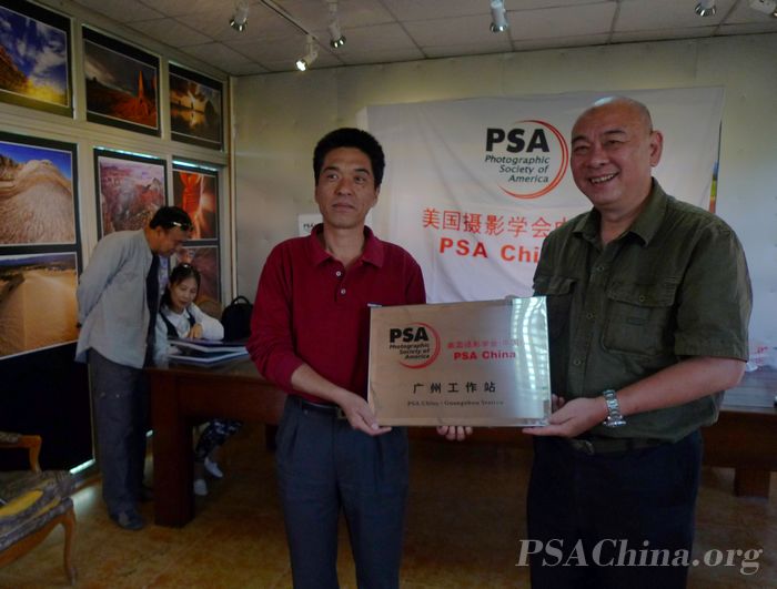 邓大端先生出席PSA China广州工作站授牌仪式时间:2010年11月16日 来源:本站原创 2010年11月10日,美国摄影学会中国区首席代表邓大端先生莅临美国摄影学会(中国)广州工作站,代表美国摄影学会(中国)向工作站站长黄宣钦先生授牌,多位广东PSA会员参加了本次授牌仪式。授牌仪式在广州站活动基地举行。广州站活动基地的墙上挂满了由梁伟荣先生精心挑选的优秀摄影作品,厅堂中散发着古朴气息的中式家具,给这次的授牌仪式增添了不少艺术氛围。 邓大端先生与广东会员们交流谈心 美国摄影学会中国区首席代表邓大端先生(右)向广州工作站站长黄宣钦先生授牌 邓大端先生(中)与广东PSA会员合影 作为美国摄影学会(中国)成立的首个工作站,广州站扎根大陆摄影重镇,拥有优秀的摄影资源及群众基础。设立工作站的目的,是为了更好的拉近会员与学会的距离。我们相信,在所有中国会员的努力下,美国摄影学会(中国)秉承的PSA精神理念会被更多的摄影朋友了解并接受。我们相信,如果您喜爱摄影,您就属于PSA!