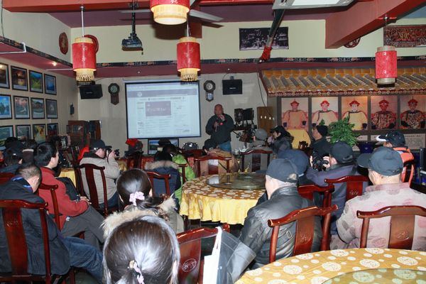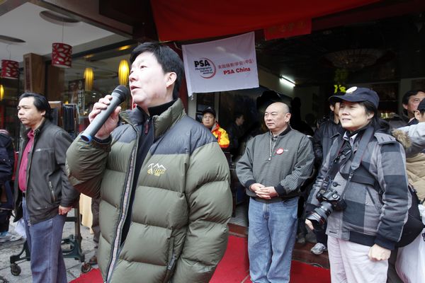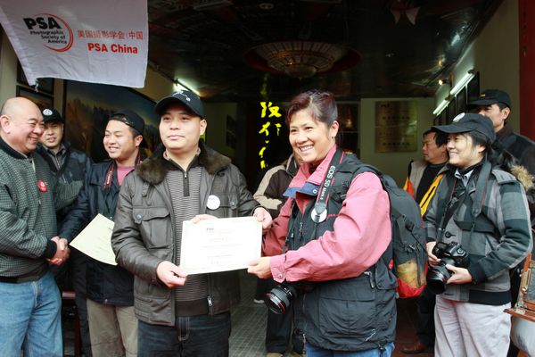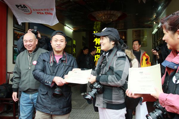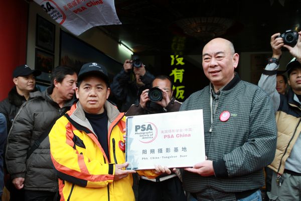 美国摄影学会(中国)阳朔摄影基地揭牌仪式时间:2010年12月28日 来源:本站原创 2010年12月25日美国摄影学会(中国)为中国广西阳朔摄影基地举办了隆重的揭牌仪式。 美国摄影学会中国区首席国际代表邓大端先生、美国摄影学会中国区地区主任王莉女士亲赴阳朔摄影基地与当地摄影界友人欢聚一堂。出席活动的有桂林市摄影家协会的主席滕彬先生、桂林市艺术摄影家学会黄兆丰会长、阳朔文联主席等众多摄影家。桂林市摄影家协会主席滕彬先生和桂林市艺术摄影家学会黄兆风会长先后在揭牌仪式上讲话。邓大端先生代表美国摄影学会(中国)分别将阳朔摄影基地主任任命书和阳朔摄影基地铜牌授予陆造文先生。 揭牌仪式现场合影 桂林市摄影家协会主席滕彬先生 桂林市艺术摄影家学会黄兆风先生 美国摄影学会中国区地区主任王莉女士将阳朔摄影基地副主任的任命书授予诸葛全生先生、美国摄影学会国际代表张秀清女士将阳朔摄影基地副主任的任命书授予了吴芳魁先生。 交流会中邓大端先生介绍了《美国摄影学会(PSA)》;王莉女士做了主题为《我能你也能》的参加各类国际摄影赛事的心得体会。 揭牌活动席间阳朔舞狮队进行了热烈隆重表演,庆贺阳朔摄影基地的成立。阳朔摄影基地的活动平台建在了陆造文先生的“没有饭店”,“没有”即有,有既是无,无既是有,十分富有哲理性。饭店的布置充满了文化气息,加之阳朔人间仙境般风光景物,都为广大摄影爱好者提供了一个很好的摄影空间和一个艺术思想交流的平台。 在揭牌活动中,举办了现场摄影比赛、进行了现场点评与交流,在邓大端先生主持评选下,当即公布了获奖者的名单。 美国摄影学会(中国)广西摄影基地摄影界友人欢聚一堂 邓大端先生代表美国摄影学会(中国)向阳朔摄影基地主任陆造文先生授牌 美国摄影学会中国区地区主任王莉女士向诸葛全生授予阳朔基地副主任任命书 美国摄影学会国际代表张秀清女士向吴芳魁先生授予阳朔基地副主任任命书 邓大端先生介绍美国摄影学会(PSA) 高角度鱼眼拍摄的揭牌仪式现场(获奖作品选登) 舞狮表演