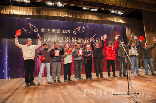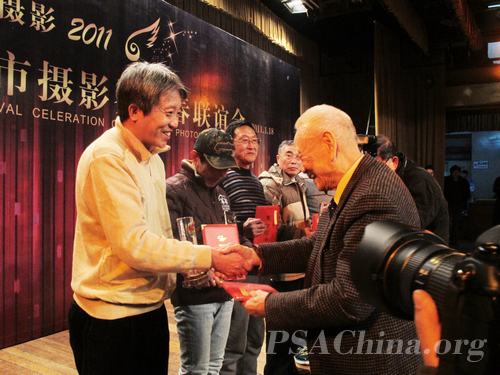 热烈祝贺PSA国际代表沈健先生荣膺“十佳摄影家”时间:2011年1月19日 来源:本站原创 欣闻美国摄影学会(PSA)国际代表沈健先生荣膺上海市摄影家协会“十佳摄影家”称号,在此,向沈健先生表示热烈祝贺!2011年1月18日,上海市摄影家协会举办了隆重的新春联谊会暨“十佳摄影家”颁奖晚会。当晚,在沪的500多位摄影家及友人到会。90岁高龄的著名摄影艺术家简庆福老人莅临现场为获奖摄影家颁奖。 著名摄影艺术家简庆福老人(右)为沈健先生(左)颁奖 成绩和荣誉总是会留给坚持努力的人。沈健先生自2009年担任PSA国际代表以来,热心组织上海地区PSA会员和摄影爱好者进行摄影艺术和摄影技术的切磋与交流,举办数码影像制作、修图等的操作讲座。与影友们共同成长和进步。沈健先生一直勤勉于摄影创作,并获得不小的成绩。在短短两年的时间里,他先后有130幅次的摄影作品在近30个国内、国际影展中获得了入围以上的奖项,其中获得国际影艺联盟(FIAP)金奖一次、郎静山金像奖一次、铜奖一次、五次丝带奖、六次优异奖,一幅作品被福建省档案馆收藏。与此同时,沈健先生也获得了美国摄影学会(中国)2010年度的“国际摄影十杰”。 上海市摄影家协会“十佳摄影家”合影(左一为沈健先生) 上海市摄影家协会的“十佳摄影家”评选活动是从2001年开始创办的。旨在表彰在摄影创作、组织工作和摄影学术研究等方面取得成绩、做出积极贡献的摄影家。