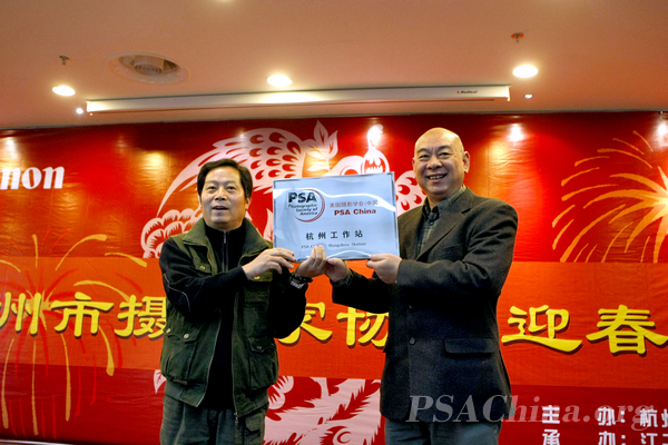美国摄影学会(中国)杭州工作站成立时间:2011年01月25日 来源:本站原创 2011年1月16日美国摄影学会(中国)杭州工作站的授牌仪式在杭州市江干区文化中心报告厅举行。这是继广州工作站成立以来美国摄影学会(中国)在中国大陆建立的第二个摄影工作站(查看其它工作站及摄影基地)。美国摄影学会(PSA)中国区首席代表邓大端先生将美国摄影学会(中国)杭州工作站的牌匾授予杭州摄影家协会主席吴宗其先生。出席本次授牌仪式的还有美国摄影学会中国区地区主任、国际代表王莉女士,及美国摄影学会中国国际代表沈健先生。 授牌仪式(摄影:吴璜) 美国摄影学会(中国)在中国大陆建立摄影工作站是为了方便各地PSA会员联络、开展活动、勤于交流。是为了更好地宣传美国摄影学会(PSA)沙龙摄影的理念,促进和推动摄影学和摄影艺术的发展,促进全社会摄影艺术水平的提高,推动全社会摄影文化事业的繁荣和发展。 邓大端先生发言(摄影:沈健) 吴宗其先生做重要讲话(摄影:吴璜) 本次授牌仪式是在杭州市摄影家协会2011年迎春联谊会上举行的。在这次会议上,吴宗其主席做了重要发言,同时还评选出了杭州市摄影十佳等。