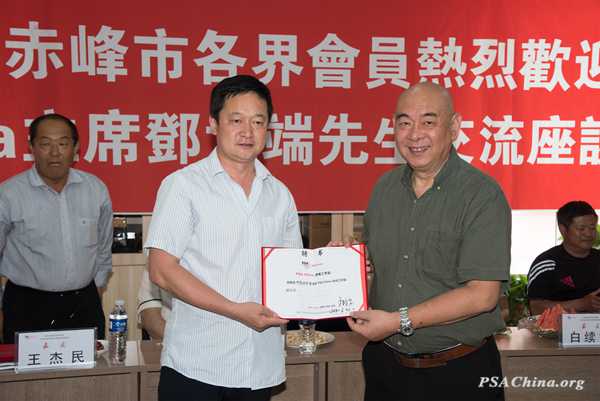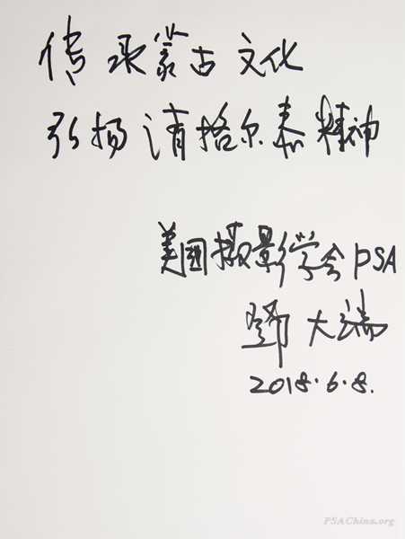 PSA China主席邓大端在内蒙古赤峰市考察时间:2018年6月15日 来源:PSA China赤峰工作站 2018年6月8日,在评比完第十二届PSA China国际摄影大赛后,不顾紧张评比的劳顿,PSA China主席邓大端在PSA China常务副主席王莉、PSA China副主席、PSA China赤峰工作站站长王亚波的陪同下,从三亚乘机飞往北京,在首都国际机场,王莉副主席在共进送行餐后,把邓大端主席送上班机,飞往内蒙古赤峰市考察。 邓大端主席一行考察清格尔泰纪念馆 邓大端主席为著名蒙古族语言学家清格尔泰纪念馆题字 在赤峰市考察期间,马不停蹄,对赤峰市境内的人文环境、名胜古迹、风景观光区等,先后走访了赤峰市新城区、松山区、宁城县、喀喇沁旗以及PSA China赤峰工作站。 邓大端主席在喀喇沁旗亲王府考察 邓大端主席在喀喇沁旗亲王府考察 邓大端主席在宁城县葫芦峪旅游开发景区考察 邓大端主席在清格尔泰纪念馆兴致勃勃换上蒙古族服装,展示出蒙古族汉子的气势和威武,他自己非常喜欢这幅照片 邓大端主席在宁城县二宾馆一行 2018年6月9日,邓大端主席莅临PSA China赤峰工作站作工作考察。 邓大端先生莅临PSA China赤峰工作站作工作考察 赤峰工作站PSA China会员达四百多人,目前是PSA China会员数量和规模最大的摄影工作者站,每年组织会员参加PSA China举办的国际摄影大赛已达一千多人次,取得了十四枚国际金奖、十八枚国际银奖、四十多枚绶带奖,七百多枚入围奖,是目前在内蒙古摄影界参加国际摄影组织认证的高规格国际摄影大赛领先摄影组织。 邓大端先生莅临PSA China赤峰工作站作工作考察 邓大端主席在签名 2018年6月12日,在PSA China赤峰工作站并举行了“赤峰市各界会员热烈欢迎PSA China主席邓大端先生交流座谈会”。 邓大端主席为艺术顾问、中国著名书法家白续智先生颁发聘书 会上,邓大端主席对PSA、PSA China的理念进行了深入浅出的介绍,对投稿参赛的注意事项等国际赛事规则等进行了普及,与会员们进行了热烈的交流和互动,取得了良好的效果。 邓大端主席为新聘任副站长邢忠财先生颁发聘书 邓大端主席与新聘任的两位副站长和四位艺术顾问合影 同时,对此行的考察目的和PSA China的未来发展和赛事活动等也进行了介绍。邓大端主席亲自为PSA China赤峰工作站新聘任的两位副站长和四位艺术顾问颁发了聘任书。 邓大端主席在作重要讲话 邓大端主席和交流座谈会与会人员合影 2018年6月12日中午,PSA China赤峰工作站在贺奇大酒店为邓大端主席举行了送行酒会。共30人参加了迎送酒会。 邓大端主席送行酒会,PSA China赤峰工作站监事长潘喜龙先生致祝酒词 2018年6月12日晚,邓大端主席圆满结束了对内蒙古赤峰市和PSA China赤峰工作站的考察和交流活动,在PSA China赤峰工作站副监事长王运强的陪护下,顺利返回广州。 PSA China赤峰工作站报道 2018年6月15日 欢迎转载,请注明出处! |