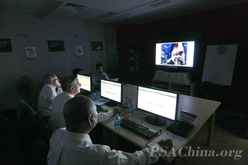 2011年PSAChina国际摄影大赛评审团成员与赛务组主要成员合影 王莉女士向评审团介绍评片系统